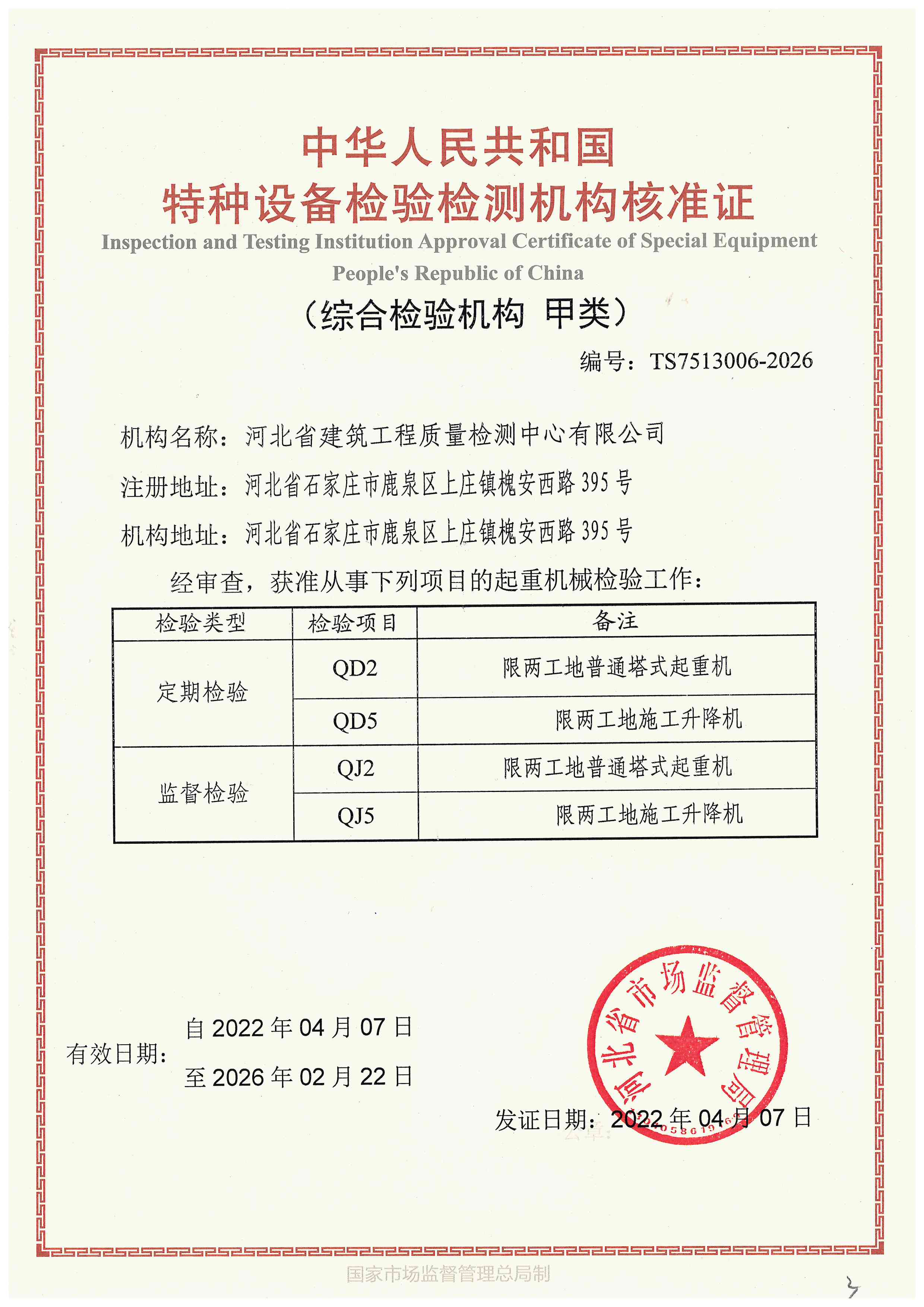 河北省建筑工程質(zhì)量檢測中心特種設(shè)備檢驗(yàn)檢測機(jī)構(gòu)核準(zhǔn)證